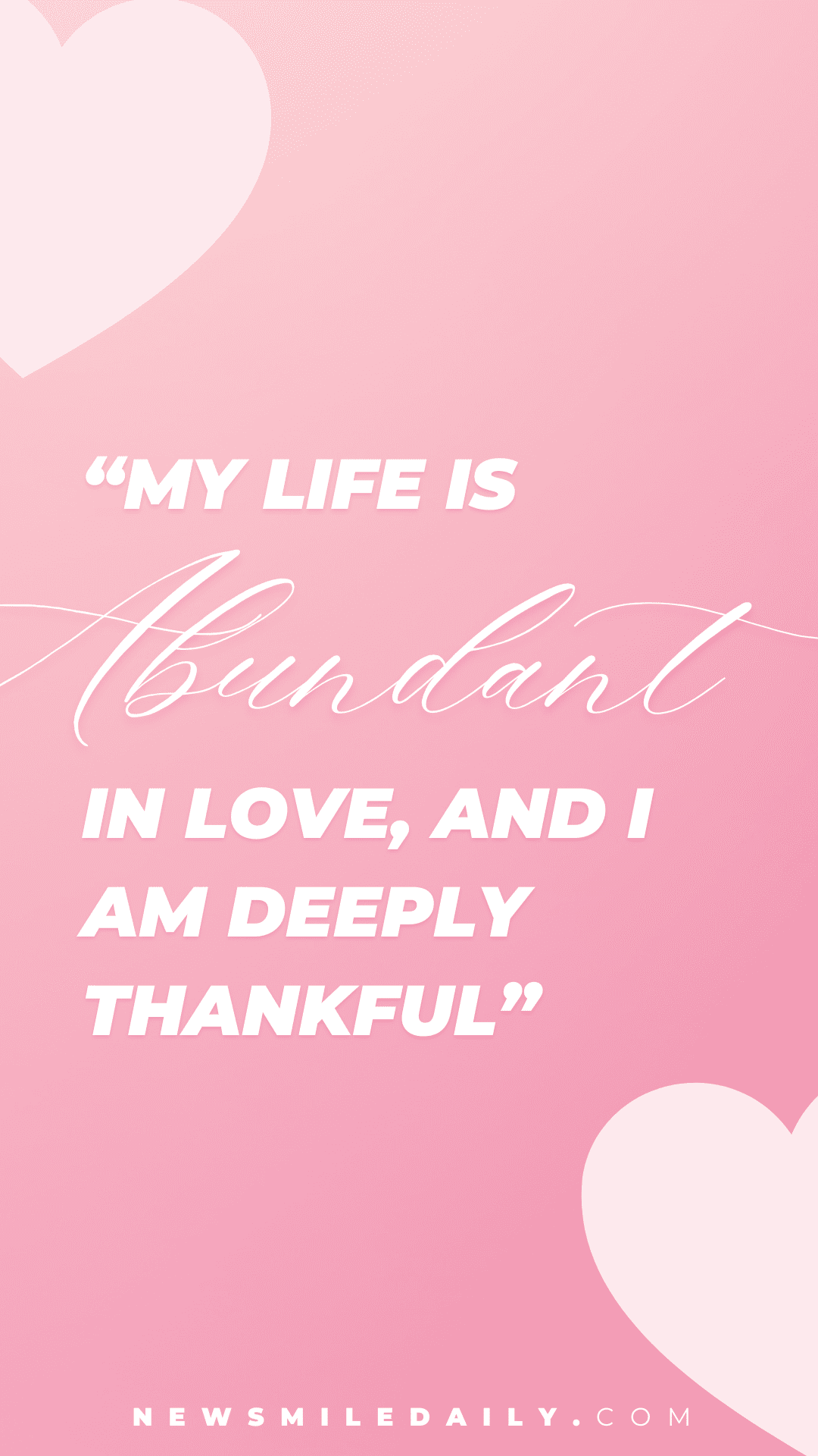 Finally, here are affirmations to celebrate the abundance of love surrounding you. Use these to create a grateful heart that attracts even more love: